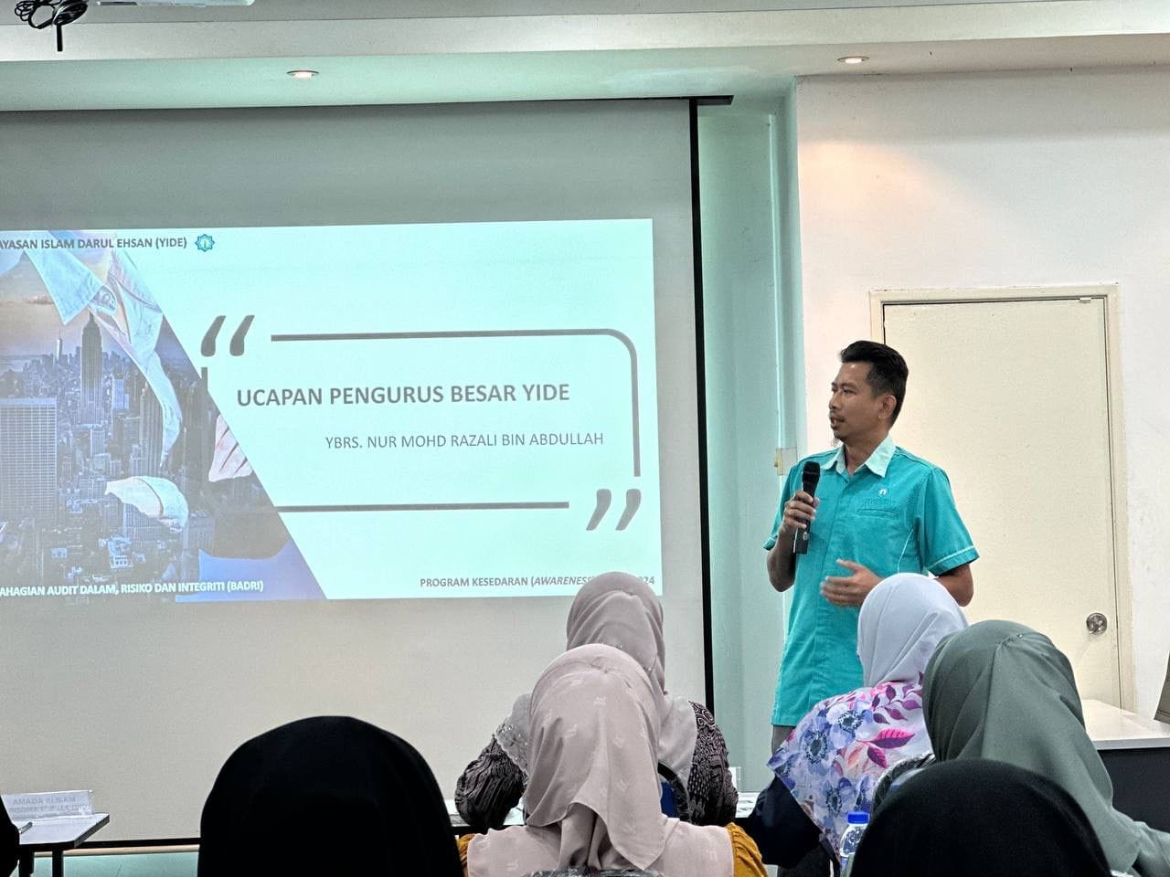 YAYASAN ISLAM DARUL EHSAN (YIDE) menerusi Bahagian Audit Dalam, Risiko Dan Integriti (BADRI) telah menganjurkan PROGRAM KESEDARAN YIDE BERSAMA AKADEMI AUDIT NEGARA (AAN) yang bertajuk “Bengkel Teknik Menjawab Maklumbalas Penemuan Audit” pada 12 Ogos 2024 (Rabu) bertempat di Bilik Mawaddah, Tingkat 2, Yayasan Islam Darul Ehsan (YIDE).