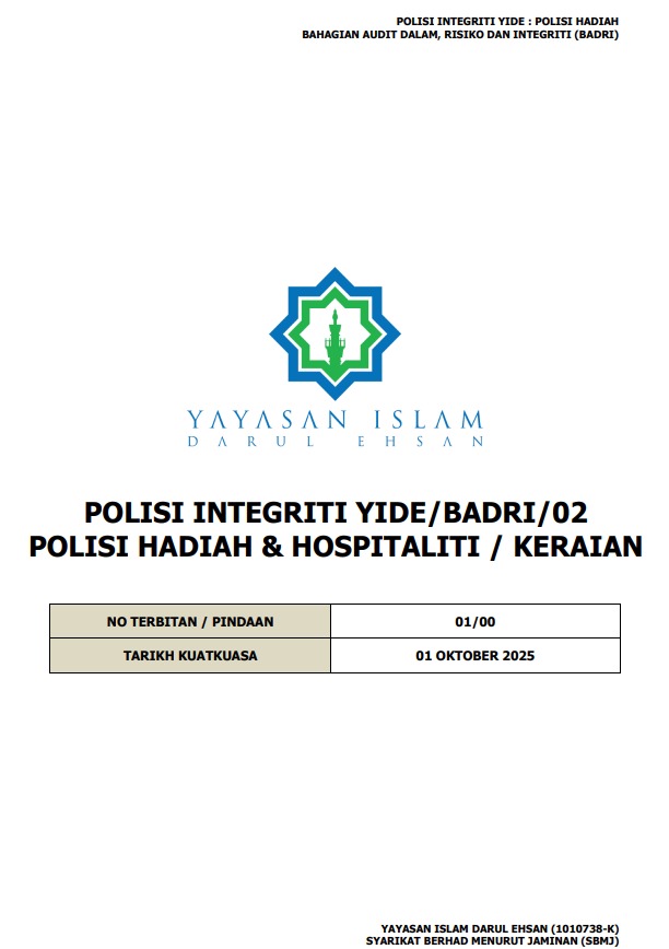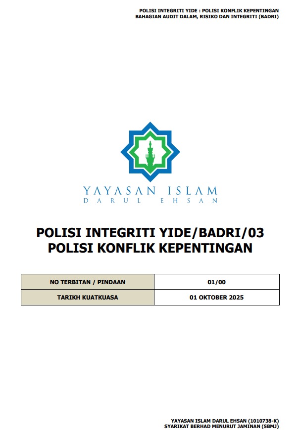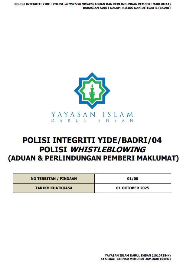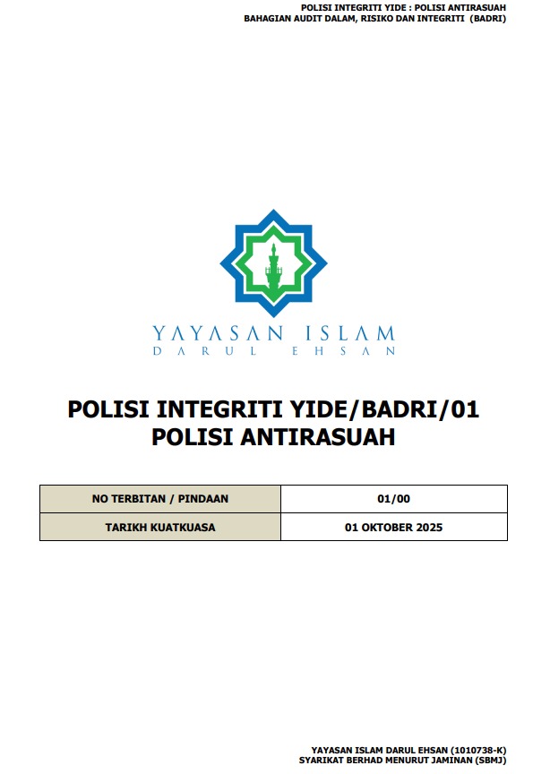 Dibangunkan sebagai satu usaha dalam memerangi perlakuan rasuah, penyalahgunaan kuasa atau penyelewengan. Polisi ini juga merupakan penambahbaikan kepada usaha-usaha sedia ada Yayasan Islam Darul Ehsan (YIDE) dalam mengatasi kelemahan tadbir urus (governans) dan pelanggaran integriti.